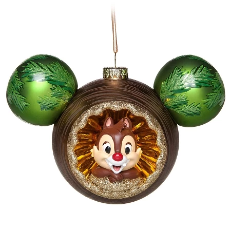 glass globe ornament featuring Mickey Mouse ears and cheery chipmunks