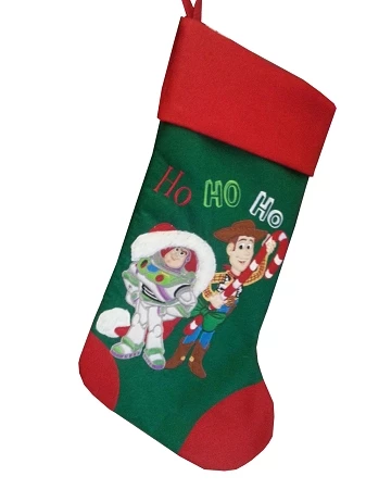 This seasonal stocking features Buzz and Woody from Toy Story.
