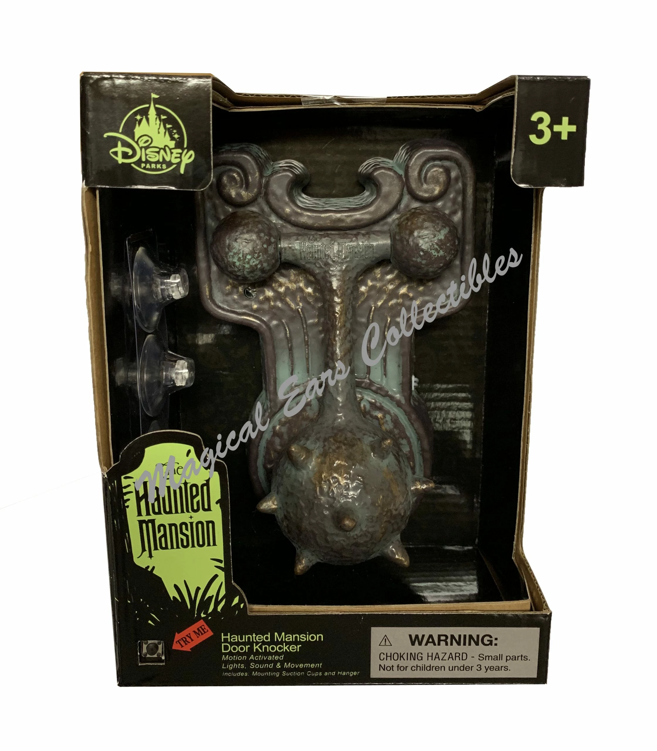 Bring a piece of Haunted Mansion home with this fun Door Knocker that has motion activated lights, sound and movement. Hang with included suction cups, hanger or screw holes.