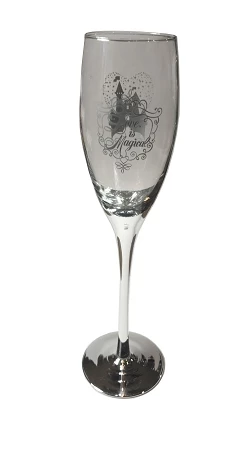 a romantic toast with this Love is Magical Wedding Flute Glass. Feature etched artwork of a Castle, and Love is Magical Logo.