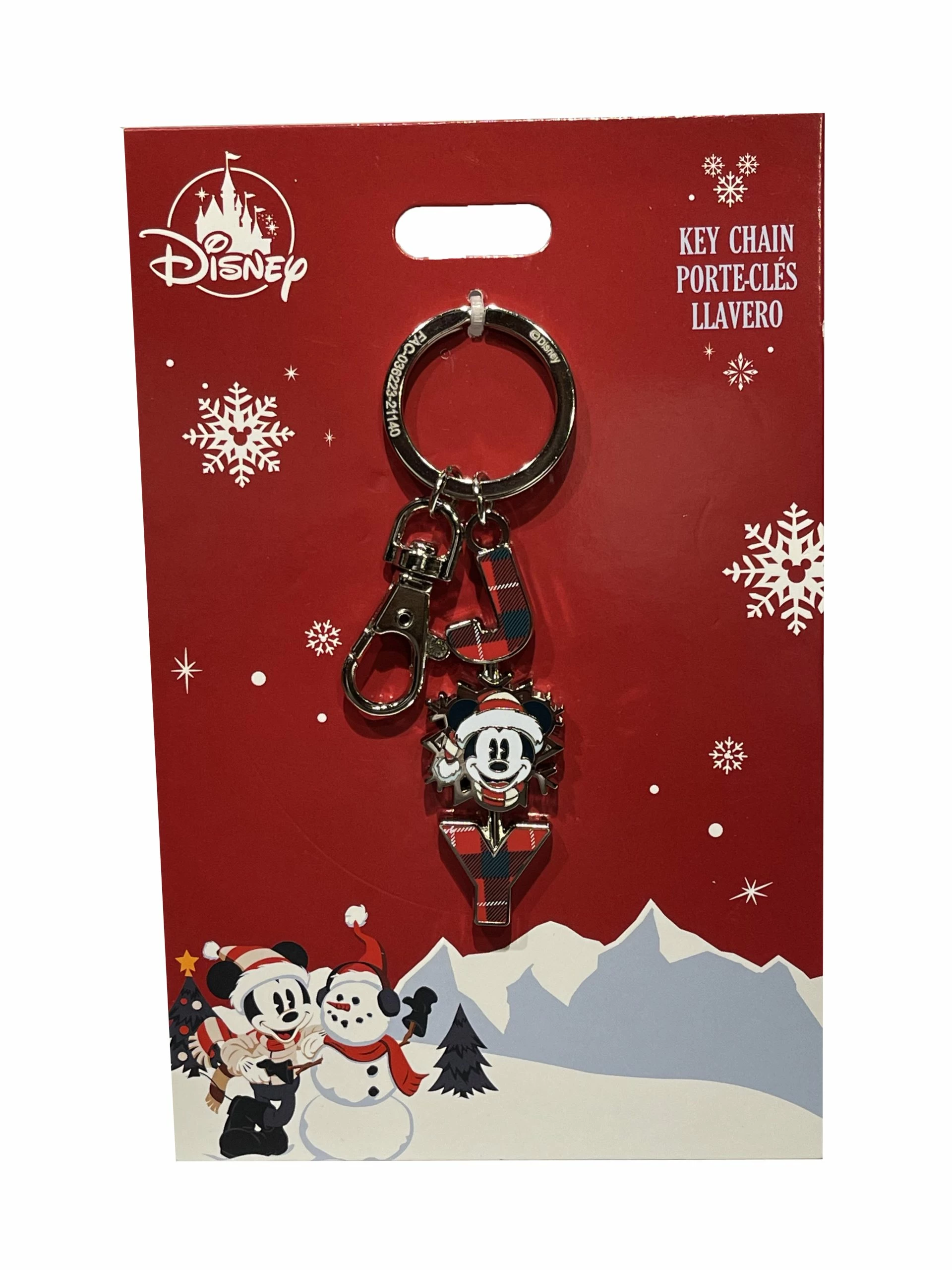 Make a fashion statement this Holiday, and clip this fun Keychain on your Keys or Bag. Features Santa Mickey Mouse with the word JOY.