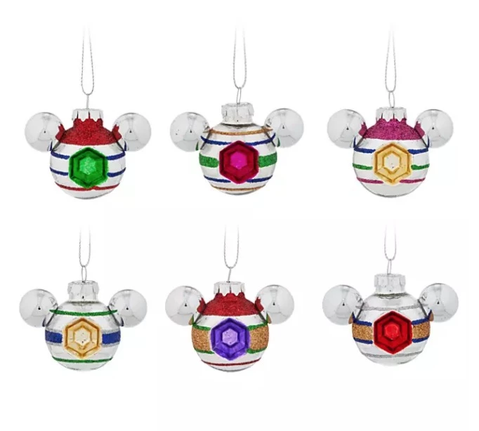 It will be a case of more the merrier this Christmas with this set of six mini Mickey Mouse icon ornaments. Each of the glass ornaments features a different color and design plus sparkling glitter to brighten up your holiday tree.