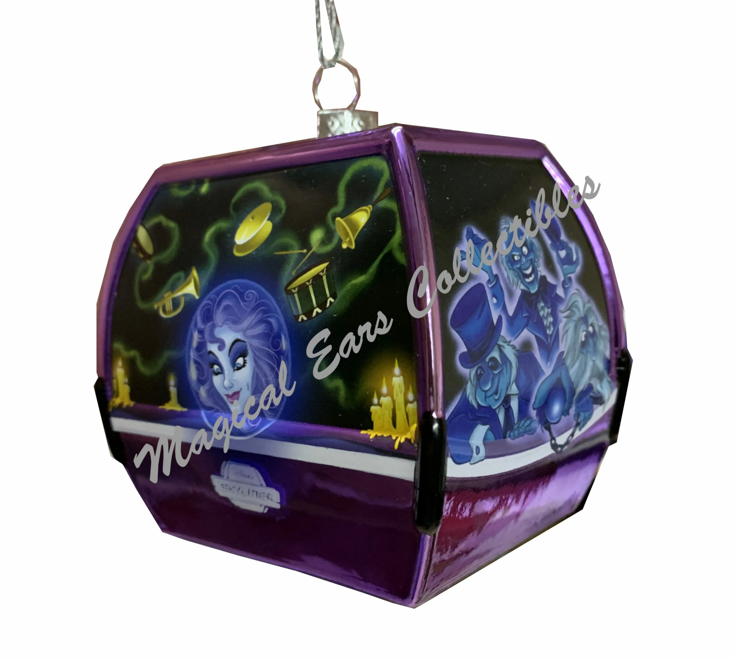 This gorgeous ornament is a SkyLiner Replica. Features The Haunted Mansion on the windows, Including Madama Leota and The Hitchhiking Ghosts.