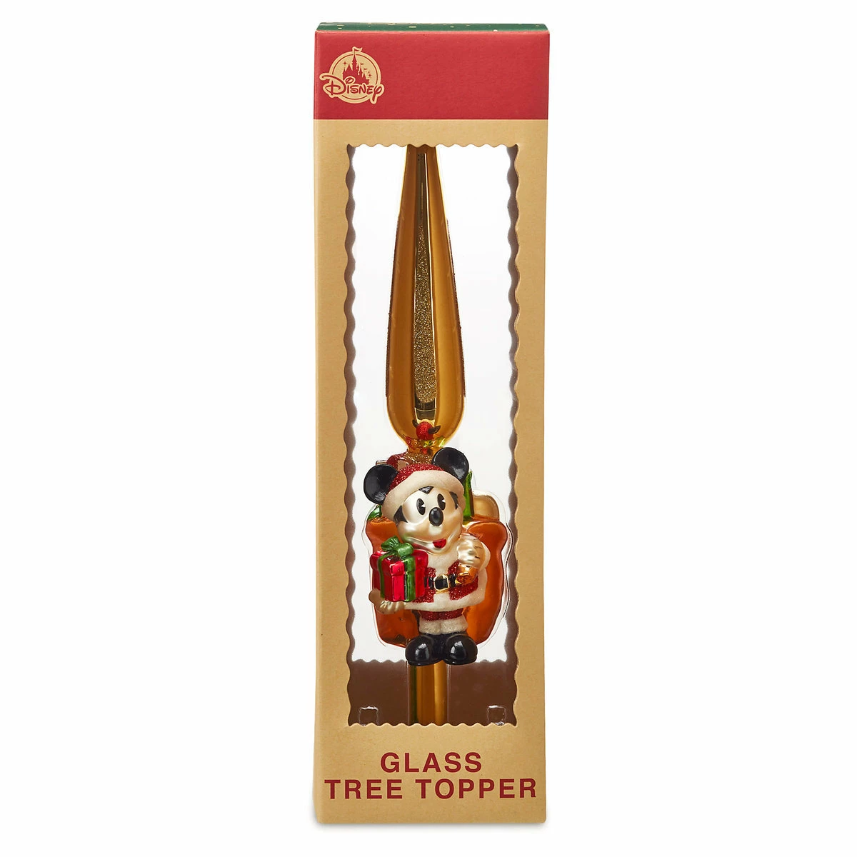 - Glass tree topper featuring Santa Mickey Mouse